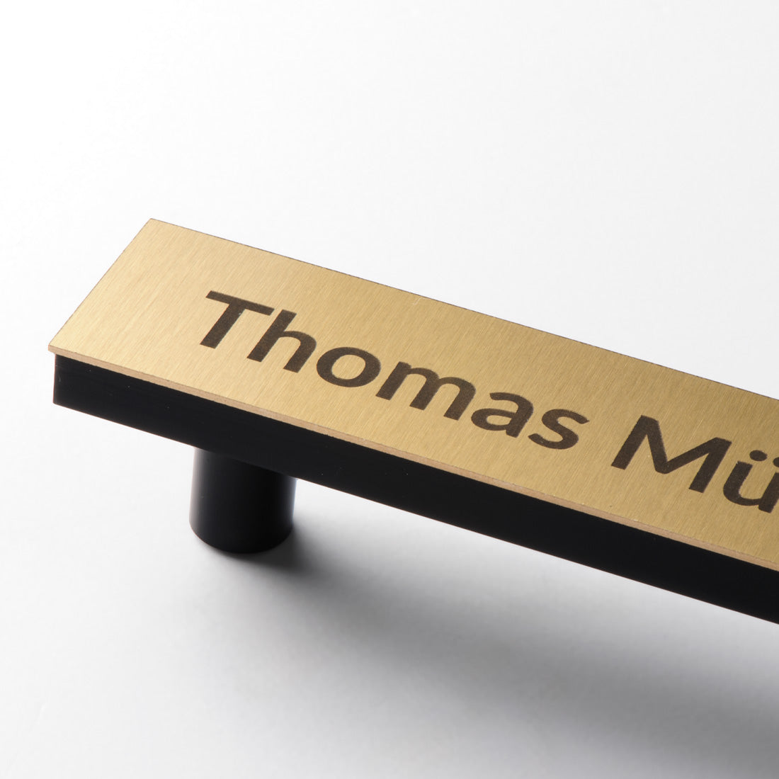 I testi all'interno della linea in ottone, vengono incisi con macchine CNC, garantendo precisione e dettagli perfetti. Questo metodo assicura un risultato pulito, duraturo ed elegante, ideale per valorizzare ingressi di abitazioni, uffici e attività commerciali.