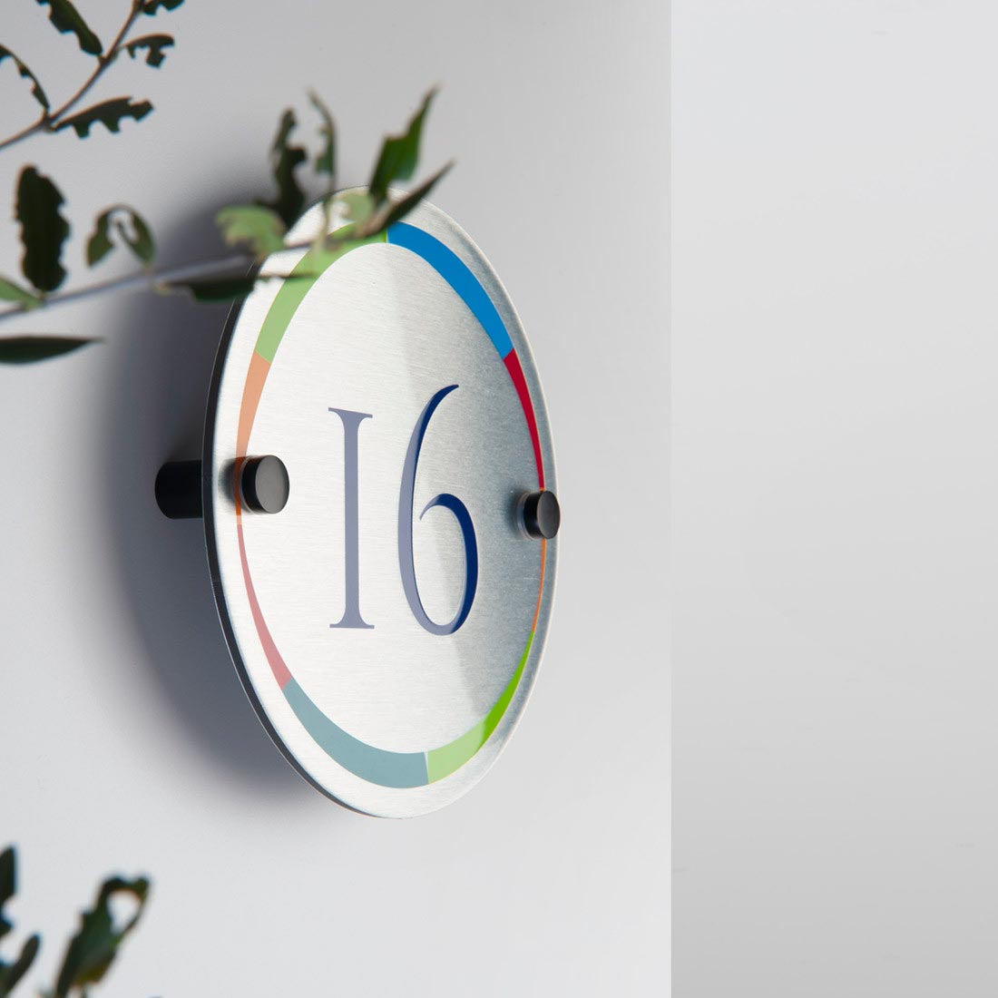 Video Numero civico in alluminio modello Larimar Round con distanziatori black